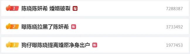 6月19日,话题#陈晓陈妍希婚姻破裂#登顶热搜,引发热议。