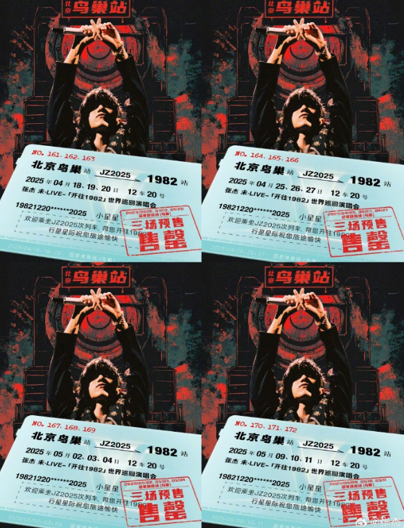 今天12:20,2025张杰LIVE巡回演唱会北京站5月9日-11日开票,一放票就被歌迷抢光。