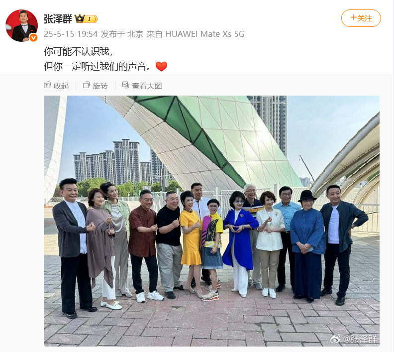 张泽群配文:“你可能不认识我,但你一定听过我们的声音。”