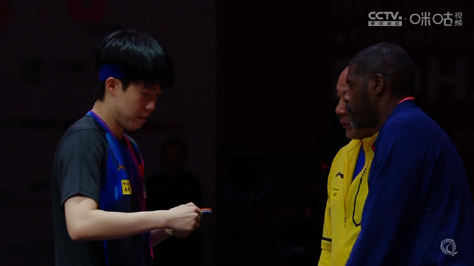 另据现代快报,检查后比赛开始前,王楚钦发现球拍胶皮开了,本场比赛教练肖战向裁判表示,好像有人把球拍胶皮从顶部掰开,但主裁判坚称检查球拍没有问题。